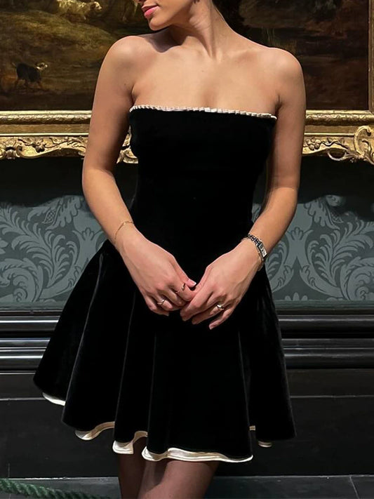 acelimosf™-Gold Velvet Sexy Tube Top Slim Backless Dress Hot Girls Evening Dress