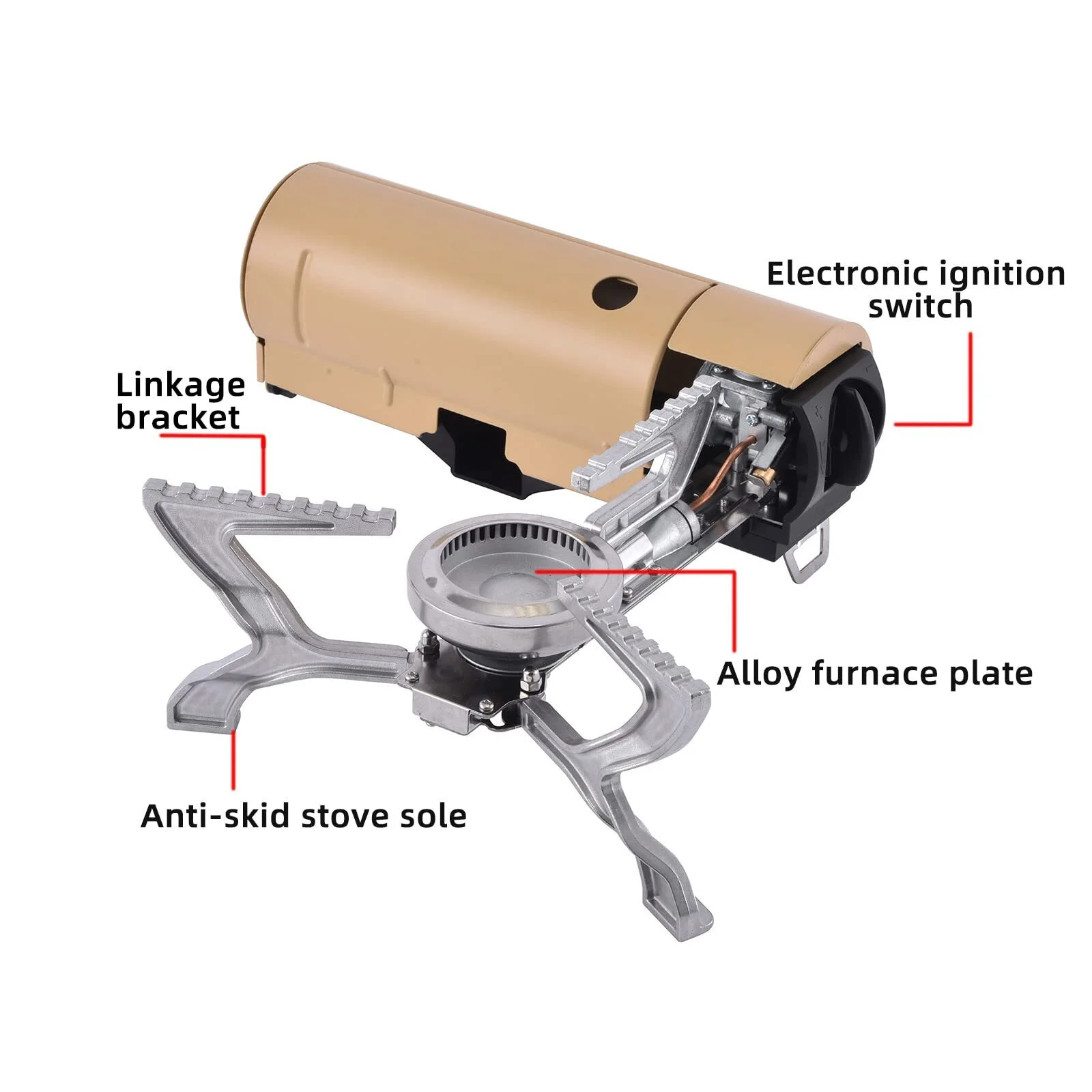 Adjustable:Electronic ignition switchFirepower freely adjust, meet your needs all kinds of cookingLeak prevention design of a switch is not closed, tank can't install.