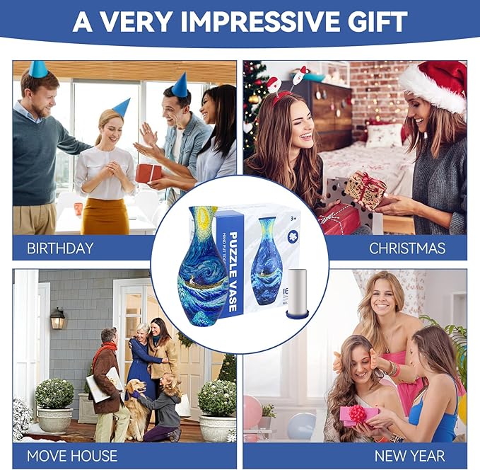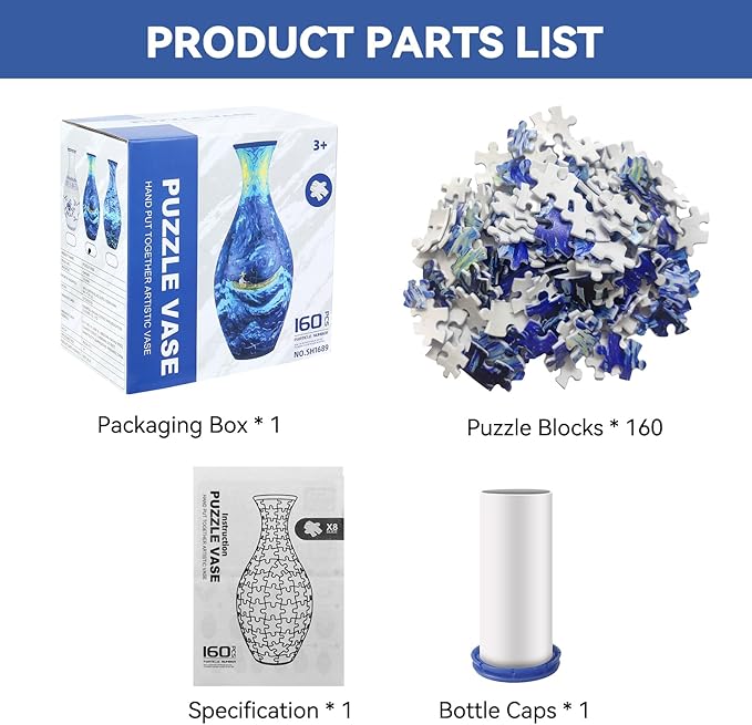 Unique 3D Flower VaseοΌMade by 160-piece 3d curved puzzle pieces with a water column.The finished vase size is 4.3 inches in diameter and 9.6 inches in height.An ideal choice for those seeking challenging and educational 3D puzzles for adults.