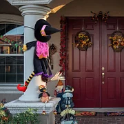 Eye-catching Halloween garden decoration-Unlike other witches decoration, steel wires in the broom and is adjustable to any angle you like. You can hang it in your living room, porch, doorway or on the tree in the yard, great for trick-or-treaters,or visitors to your house for catching sight.