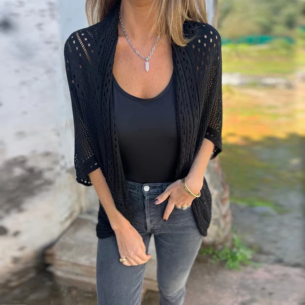 Cozy meets chic in our Hollow Half Sleeve Cardigan! Lightweight, stylish, and perfect for everyday wear. Stay warm and look fabulous!