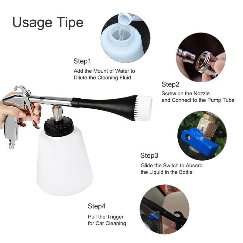 Car Interior Cleaner designed with air pulse spray nozzle and high-pressure snow foam pot provides incredibly fast and effective cleaning on 99% surface.