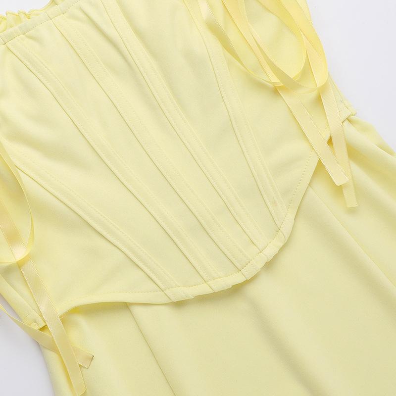 acelimosf™-Lace hem ruffle bustier bowknot cami midi skirt set