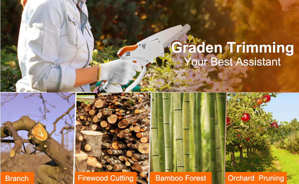 This 6-inch scie Ă chaĂźne with 1.8Lbs slim body, comfortable to hold, small but powerful, Can cut all wood within 6 inches, can access to all places. It's quiet and low vibration, can be used with one hand, not easy to fatigue for long-term use. Especialy the women and old man can easily control it.