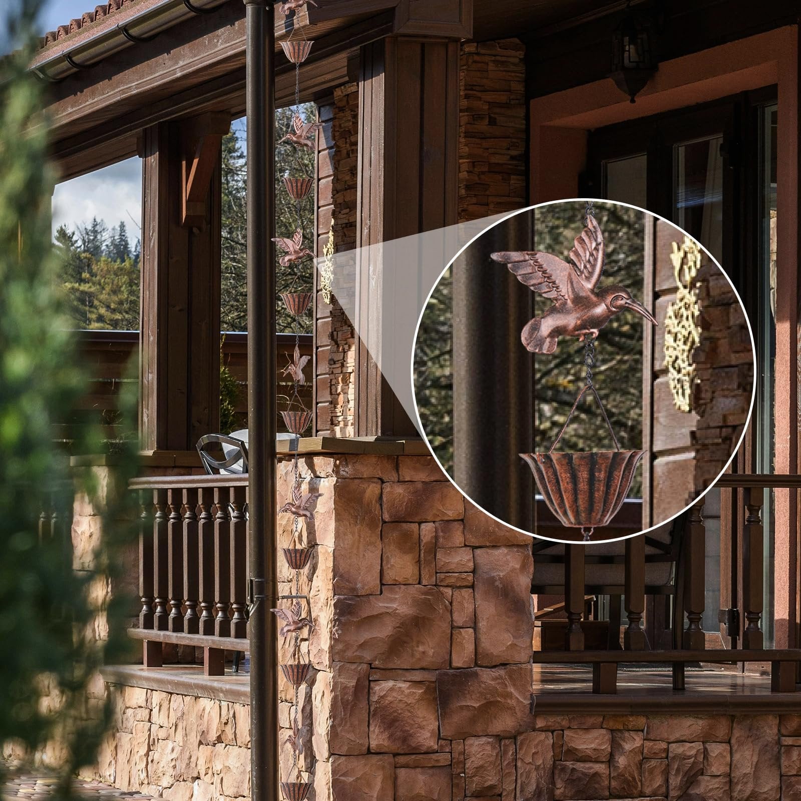 🕊️Hummingbird Rain Chain - Gutter rain chain is made of high-quality iron and consists of cups and hummingbirds connected vertically, which is beautiful and practical. This rainwater chain combines outdoor decoration with practical drainage and can be used as an optional alternative to traditional rain gutter systems.