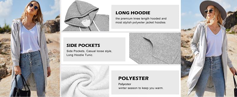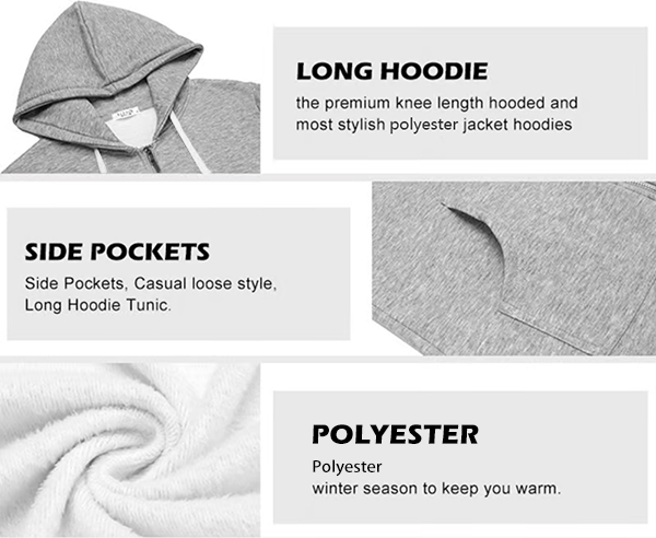 Women Casual Long Hoodies with Pockets Tunic Sweatshirt Outerwear Jacket