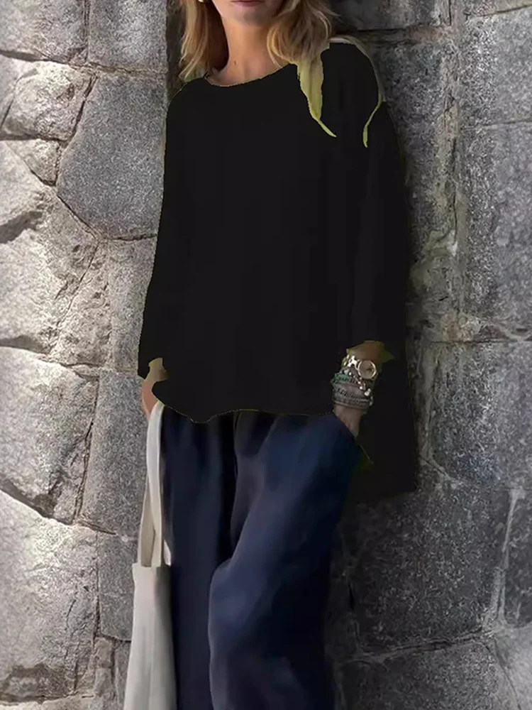 Women Solid Color Cotton And Linen Long Sleeve Shirt